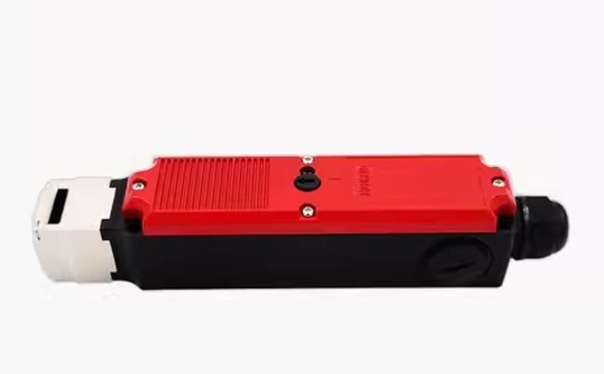 Industrieller Sicherheitsschalter zur Überwachung von Schutztüren. Verhindert Maschinenbetrieb bei geöffneter Tür und erfüllt grundlegende Sicherheitsanforderungen in der Automatisierung.